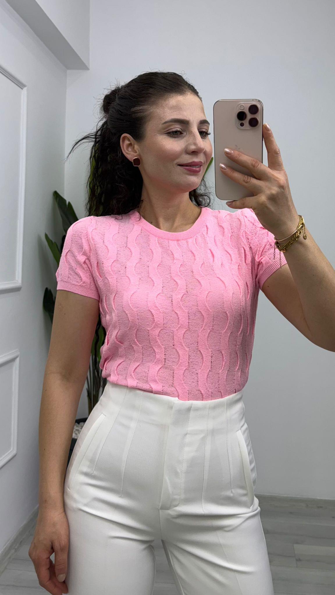 BİSİKLET YAKA DOKULU TRİKO BLUZ