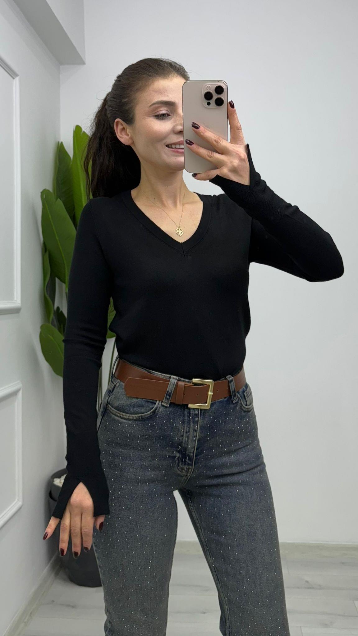 DİLVİN V YAKA KOLU YIRTMAÇLI TRİKO KAZAK