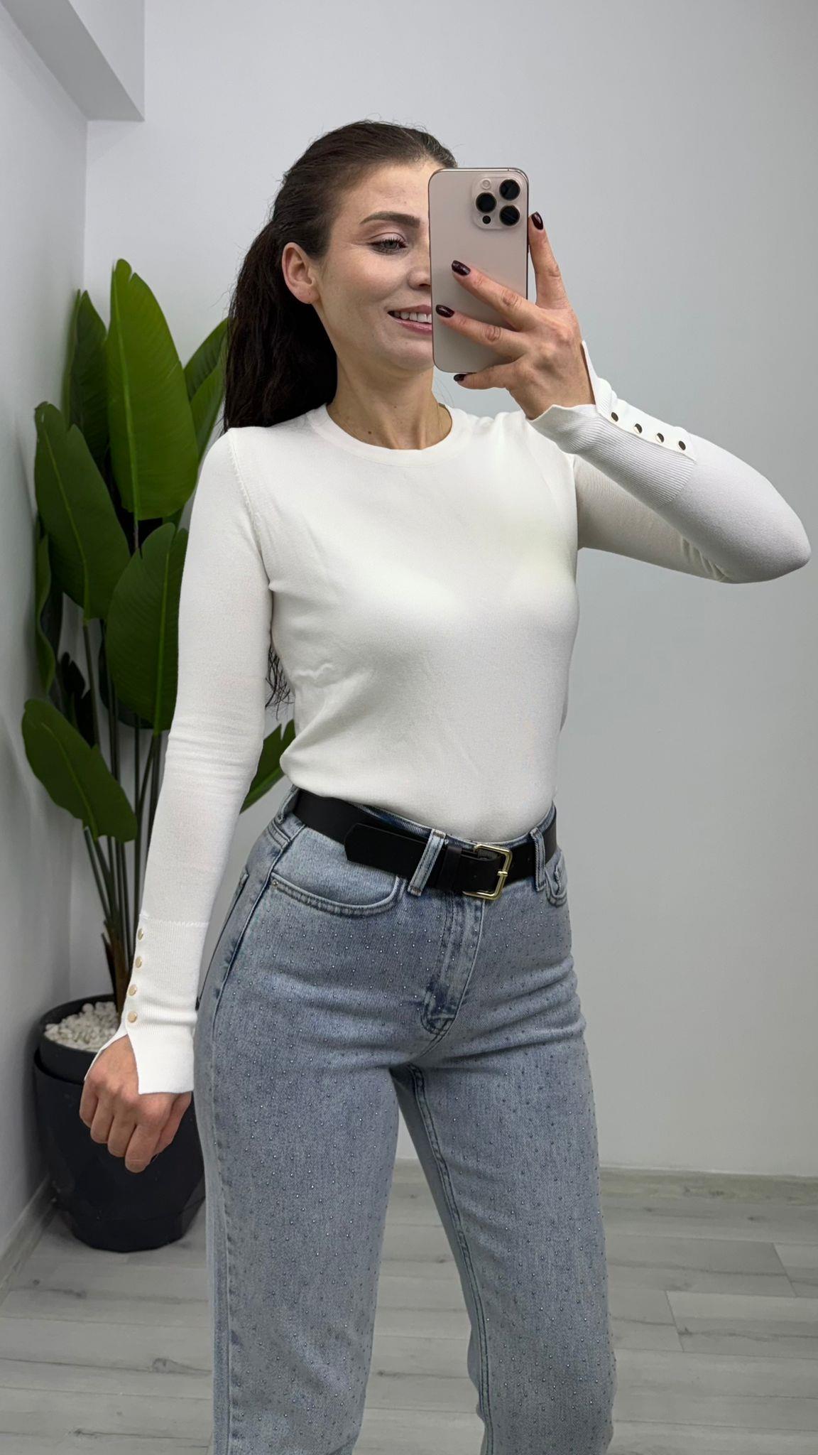 1267 Bisiklet Yaka Kol Ortası Droplu Triko Kazak Ekru