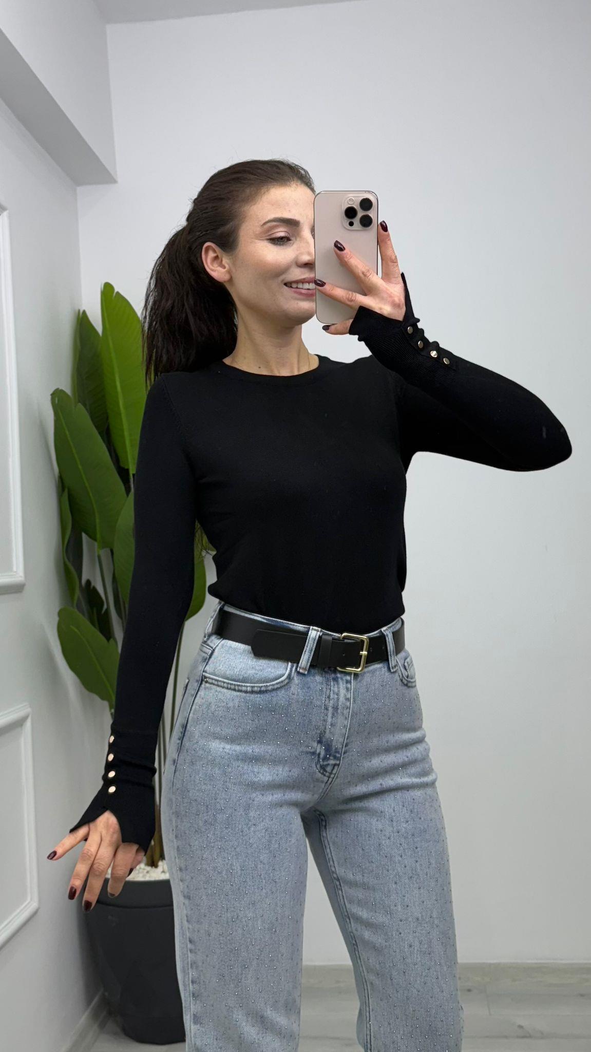 DİLVİN BİSİKLET YAKA KOL ORTASI DROP DETAYLI KOL UCU YIRTMAÇLI TRİKO KAZAK