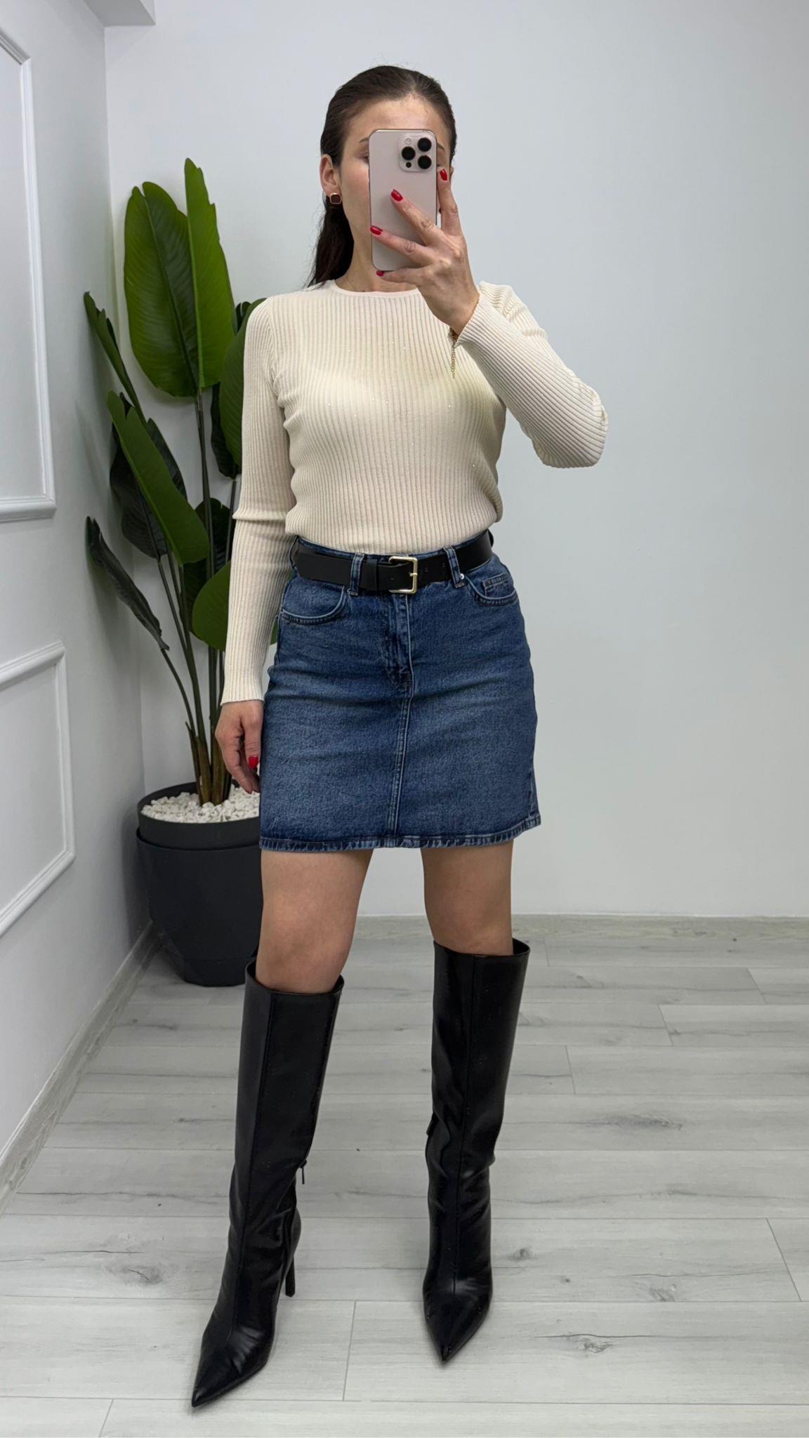XLOVE MARKA ESNEK KUMAŞLI MAVİ DENİM KISA ETEK