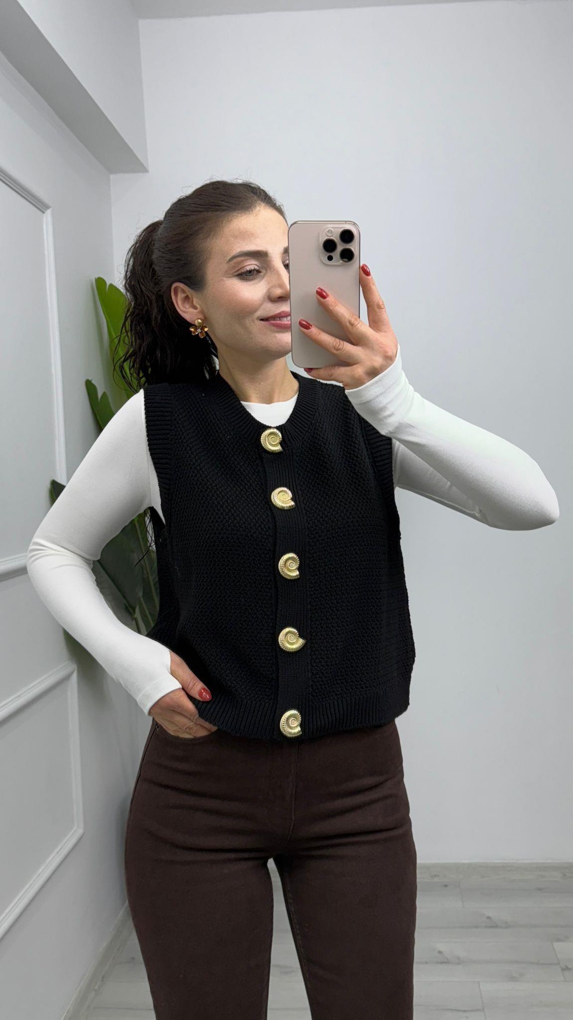DÜĞME DETAYLI ÖRGÜ TRİKO YELEK