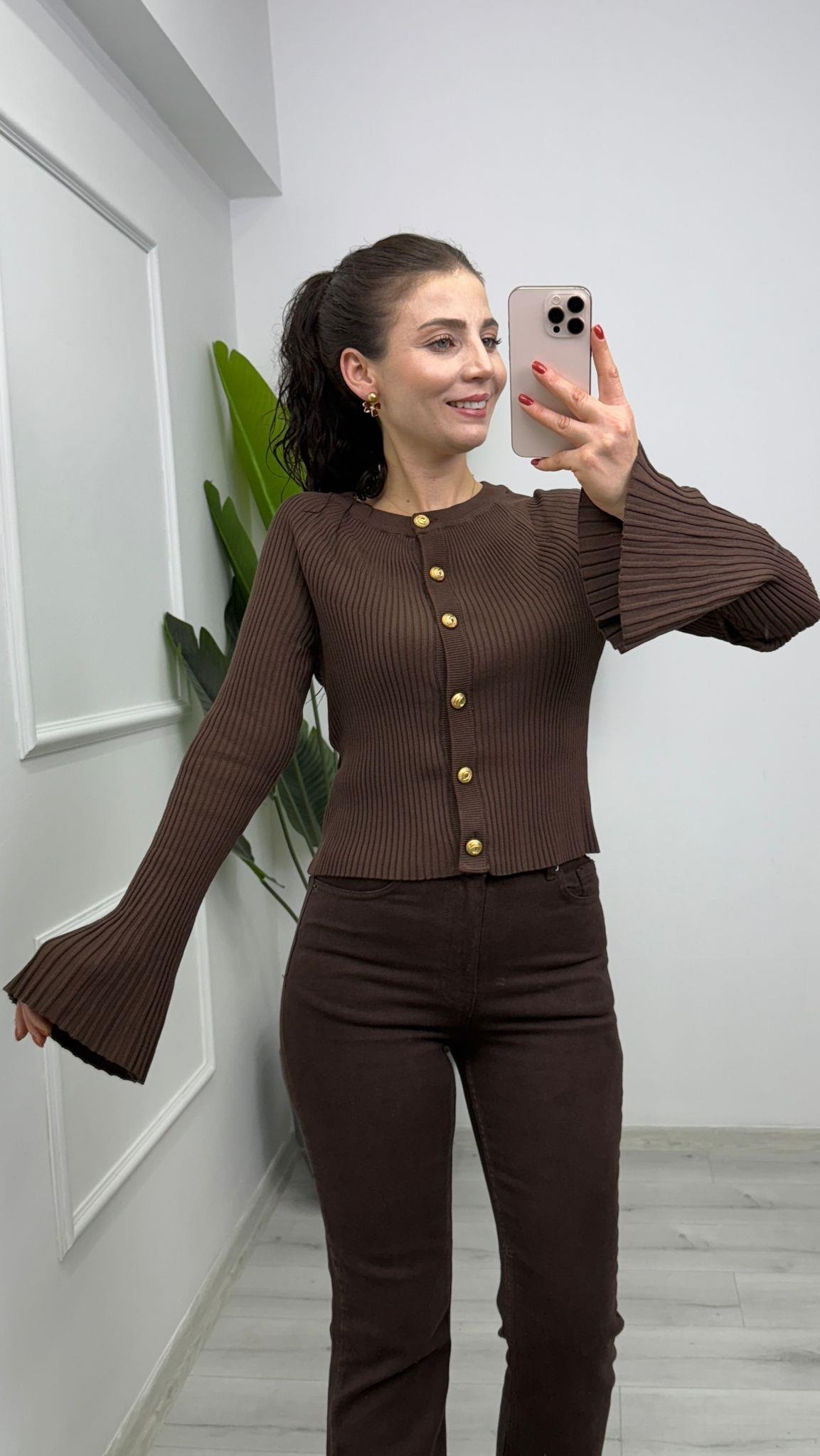 BİSİKLET YAKA GOLD DÜĞME DETAYLI İSPANYOL KOL TRİKO HIRKA