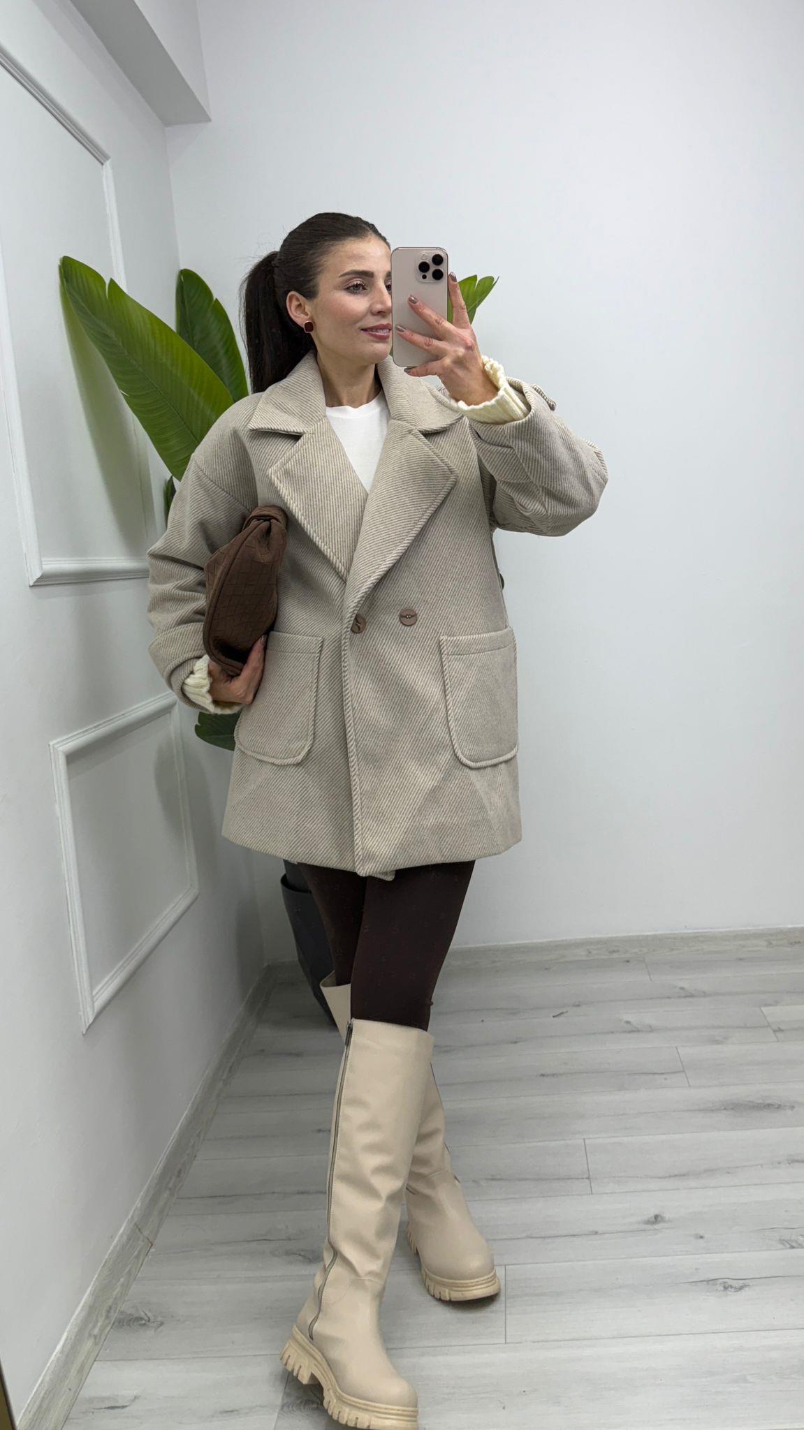 DÜŞÜK OMUZ ÇİFT CEPLİ STANDART BEDENLİ KAŞE KABAN