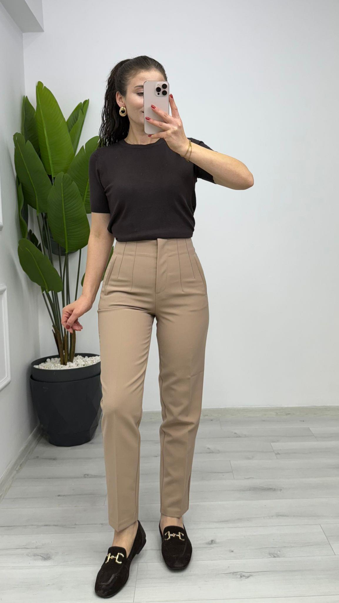 KAROL MARKA ÖNÜ FLATOLU YÜKSEK BEL TAM KALIP KUMAŞ PANTOLON