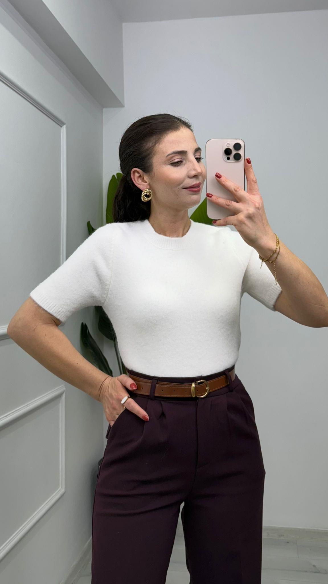 BİSİKLET YAKA KISA KOLLU YUMAŞACIK TRİKO BLUZ