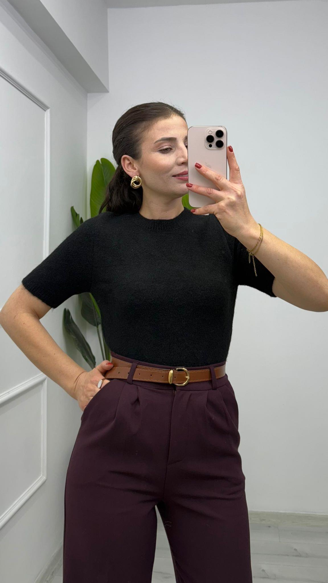 4767 Kısa Kollu Bisiklet Yaka Yumoş Triko Bluz Siyah
