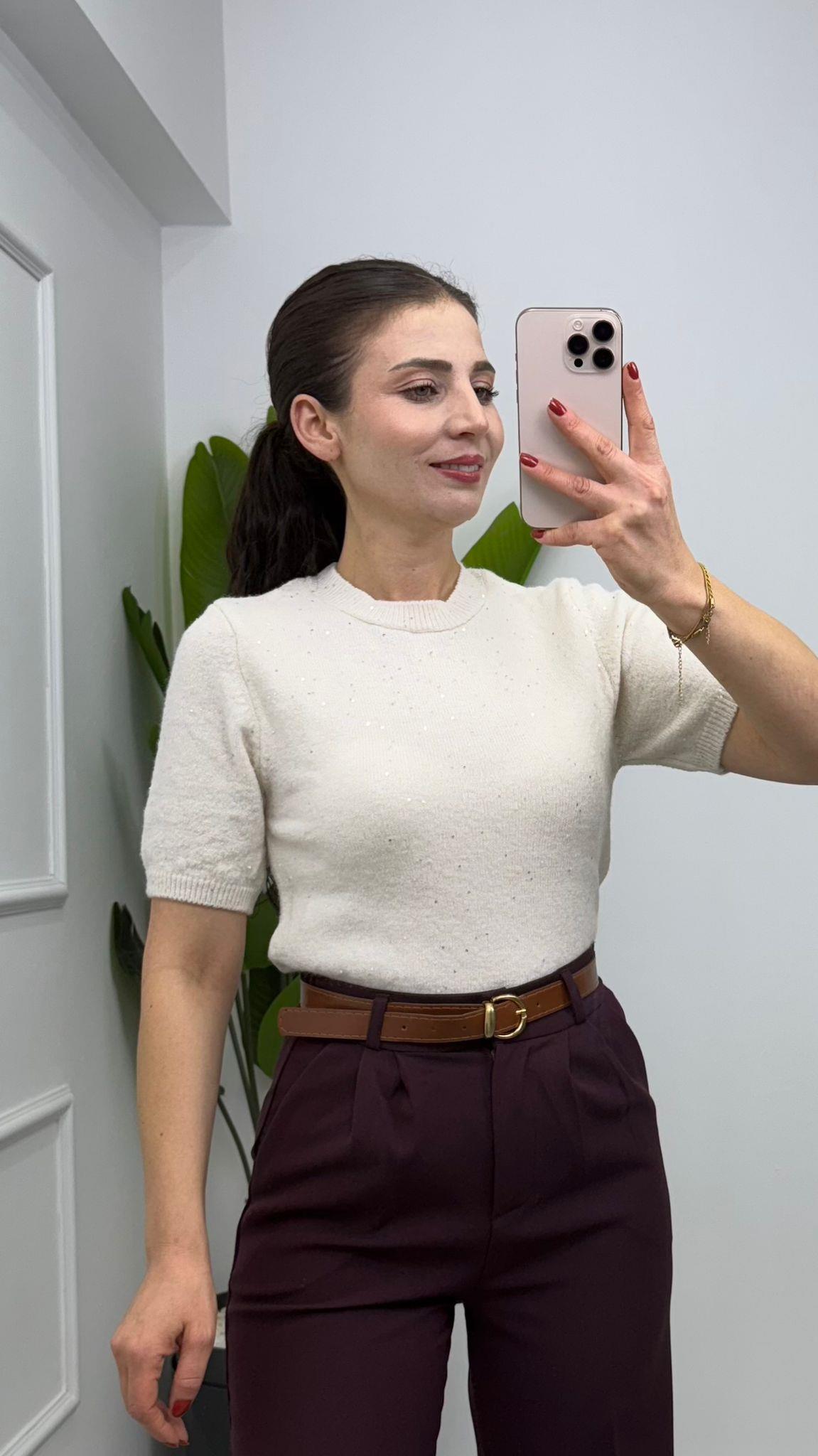 PUL PARILTILI BİSİKLET YAKA YUMUŞACIK TRİKO BLUZ