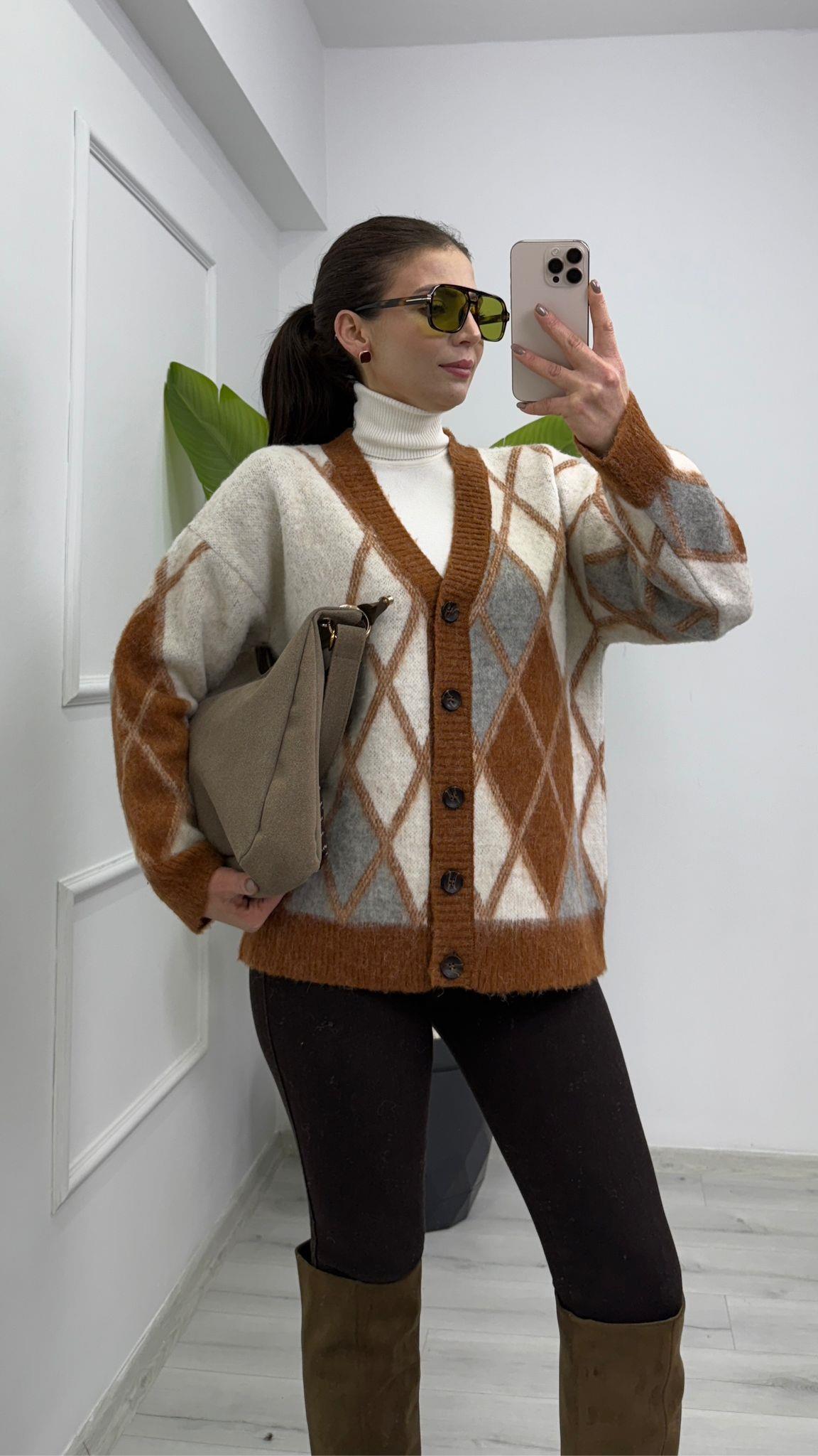 BAKLAVA DESENLİ V YAKA ŞARDONLU TRİKO HIRKA